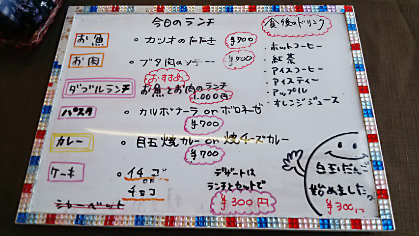 メニューは、肉・魚・両方・パスタが選べ、今日は、肉(ポークソテー)・魚(鰹のたたき)
