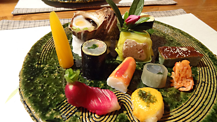 お料理は、オマール海老の貴腐ワインソースや焼牡蠣・ペペロンチーノ・生ハム・