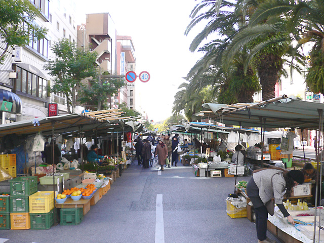 追手筋に毎週開かれる日曜市。大平商店のほくほくのいも天を食べながらぶらぶら歩くのが日曜市の歩き方(私だけ)かな?