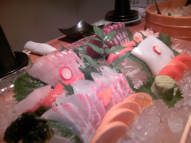 さしみ、中華2品、にぎり、てんぷら、チャーハン、フルーツと