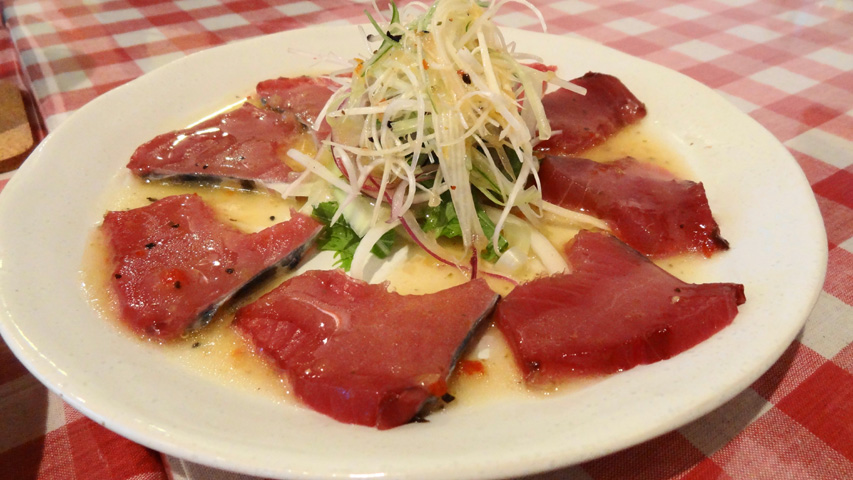 シーザーサラダ自家製パンチェッタのせ,マグロのカルパッチョ