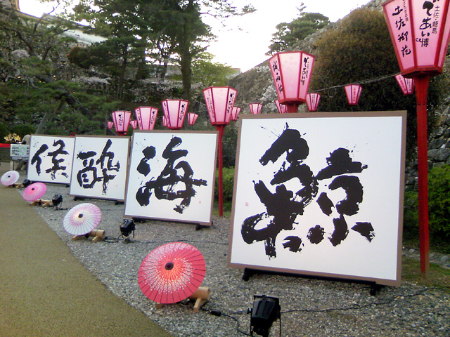 おつまみを買って夜桜を見に行きました。ちょうど高知城花回廊のイベントが開催され
