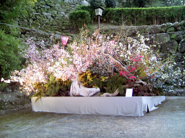 ていました。生け花や書の前で写真撮影