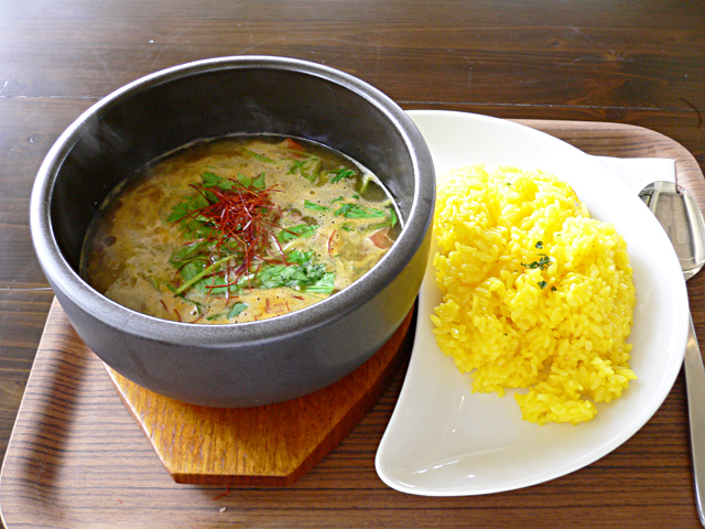 お腹ぺこりんだったので五台山スープカレー、四万十冷やしぶっかけうどんをたのみ